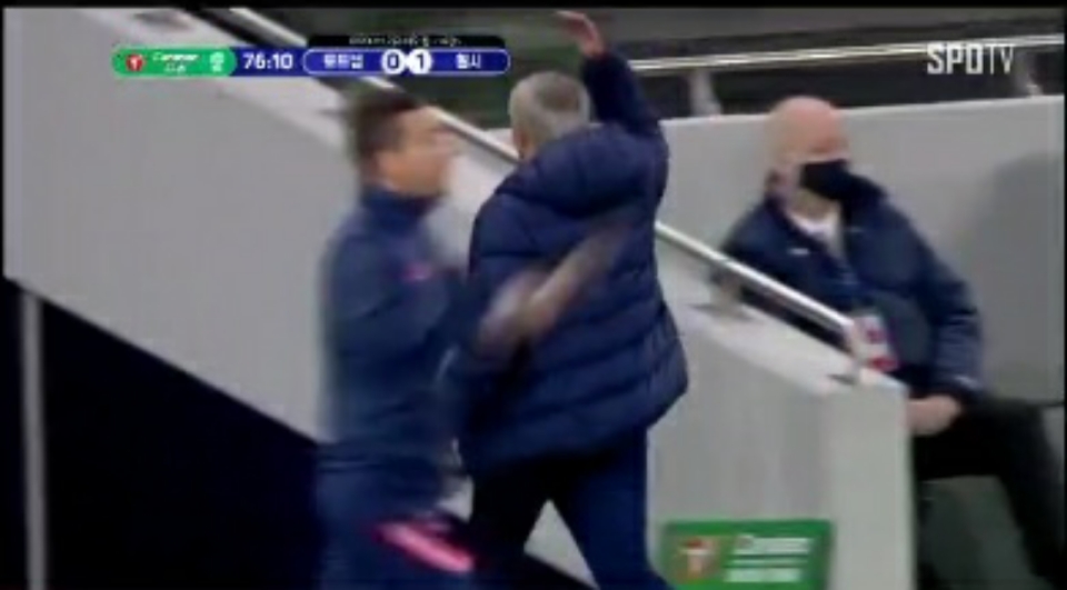 갑자기 빡쳐하며 들어가버리는 무리뉴