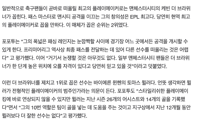 [데 브라위너를 제친, 현역 플레이메이커 1위는 누구?]