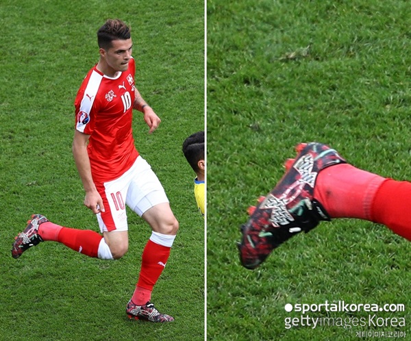 그라니트 샤카 (23, 아스널)의 축구화에는 그라니트 샤카가 직접 새긴 여러 단어들이 축구화