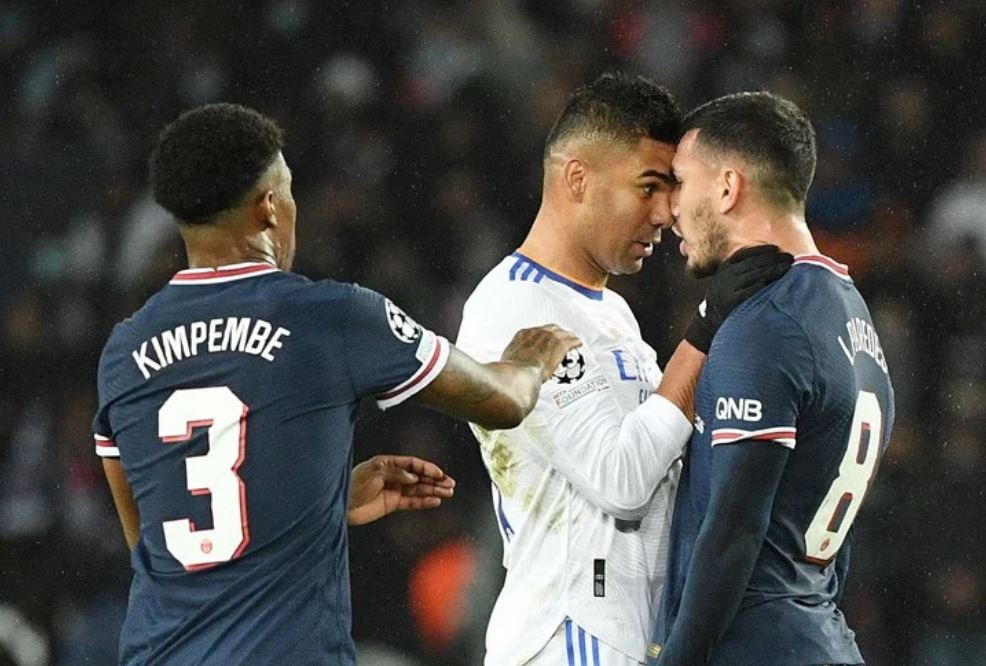 둘의 신경전에서 갑자기 파레데스의 목을 잡아버리는 카세미루..ㄷㄷㄷㄷㄷ