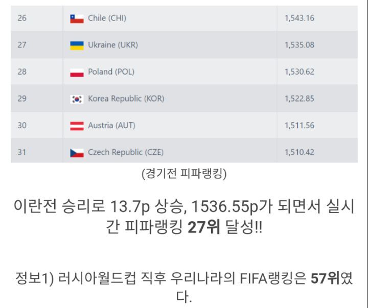 '이란 잡은' 현재 대한민국 피파랭킹은?