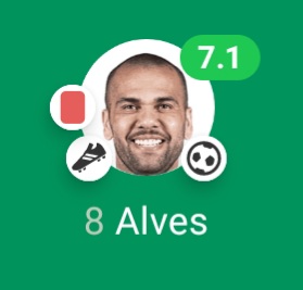 1골 1어시 1퇴장 패스성공률 88% 키패스 2회 롱패스성공 3/4(75%) 리커버리 6회 축구의 모든것을 보여준 축신 알베스ㄷㄷㄷㄷ