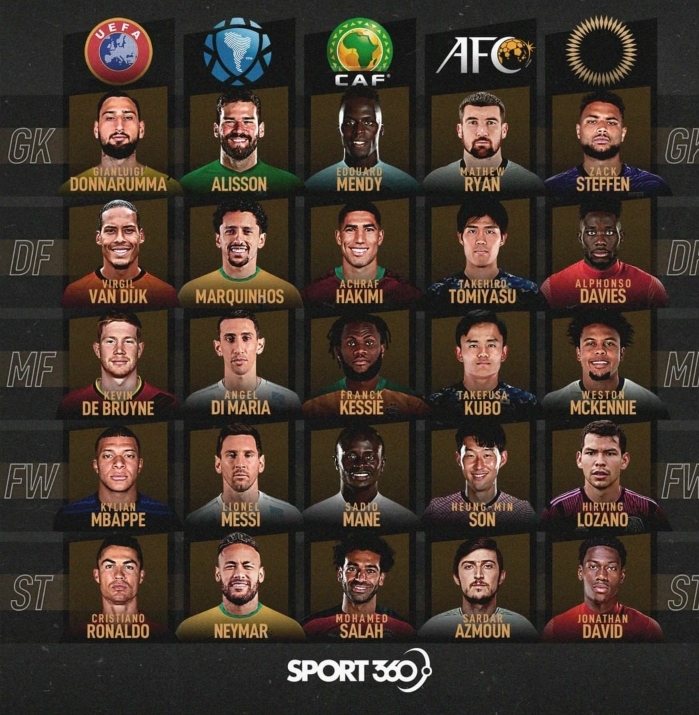 추가설명 : 대륙별&포지션 별로 1명씩만 선택 가능 ex)골키퍼로 돈나룸마 뽑으면 같은 유럽인 반다이크,덕배,음바페,호날두 선택 불가 / FW로 손흥민 뽑으면 음바페, 메시, 마네, 로사노 선택 불가 개인적으로는 : 잭 스테판 - 마르키뉴스 - 데브라이너 - 손흥민 - 살라