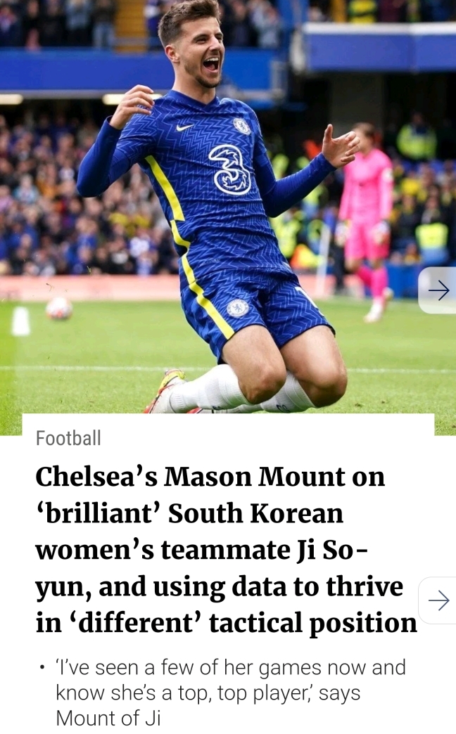 마운트 : 나는 지소연이 뛰는 몇 경기를 봤다. 지소연은 최고 수준의 선수이고 특히 온더볼 능력은 놀라운 정도다. 빠른 시일 내에 지소연의 경기를 더 보길 희망한다.