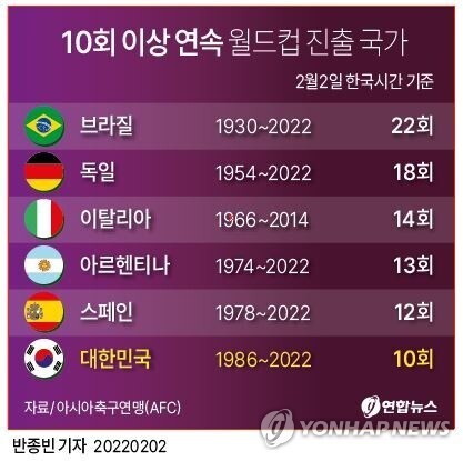 [10회 이상 연속 월드컵 진출 국가ㄷㄷㄷㄷㄷ]