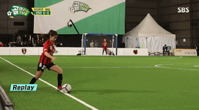 [골때녀 원더우먼 새 맴버 배우 '주명'의 열정적인 플레이 장면.gif]