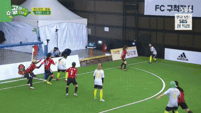 골때녀 원더우먼 새 맴버 배우 '주명'의 열정적인 플레이 장면.gif