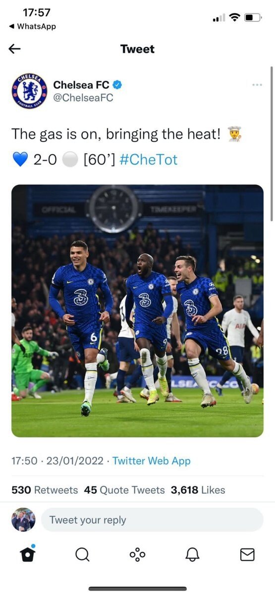 해서는 안될 글을 올리고 삭제된 첼시의 트윗