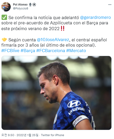 [세자르 아스필리쿠에타, 바르셀로나와 6월 이적 합의 완료]