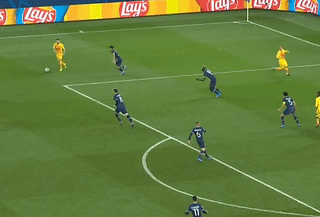 뎀벨레 침투에 맞게 후방 롱패스