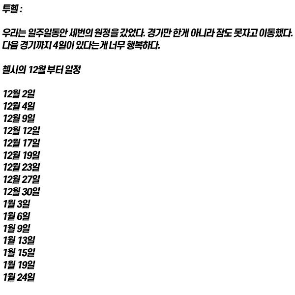 [말도 안되는 첼시의 일정과 투헬의 인터뷰.twt]