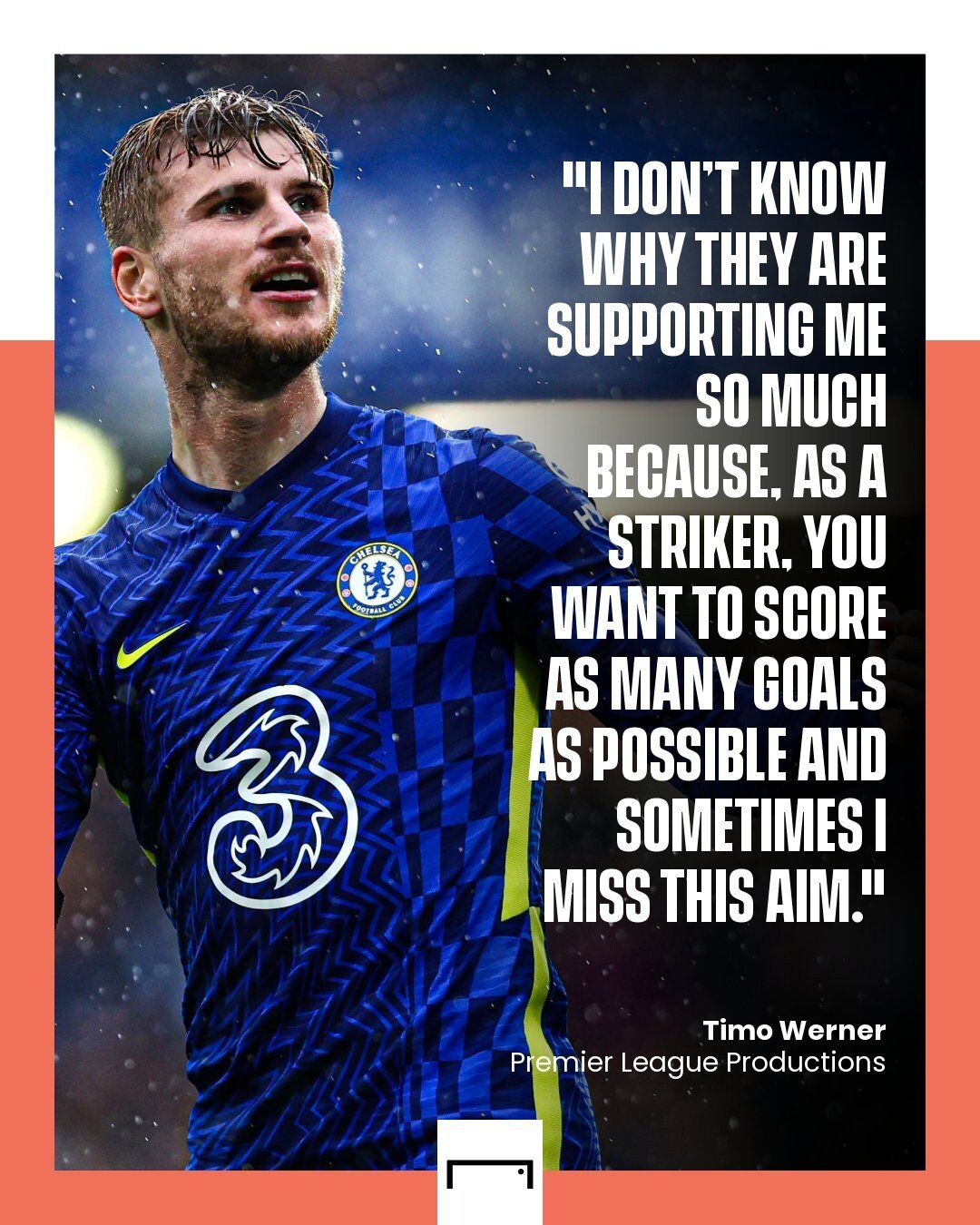 베르너 : 가끔 나는 첼시팬들이 왜 나같은 놈을 응원해주시는지 모르겠다. 나는 스트라이커고 골을 넣고 싶은데 기회를 놓치기 때문이다.....