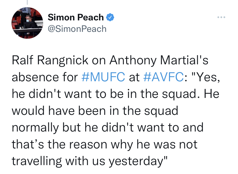 -랑닉- 마살은 명단에 포함되길 원하지 않았다. 그는 평소같았으면 명단에 있었을 것이지만, 그는 원하지 않았다. 그것이 그가 어제 우리와 함께 원정길을 오지 않은 이유다.