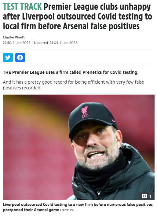 (기사 전문: https://www.thesun.co.uk/sport/football/17294562/liverpool-covid-tests-false-positives/ )