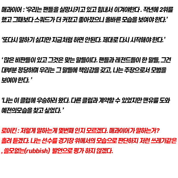 쓸데 없는말 그만하고 경기장 위에서 경기력으로 보이라는 로이킨의 발언....ㄷㄷ....