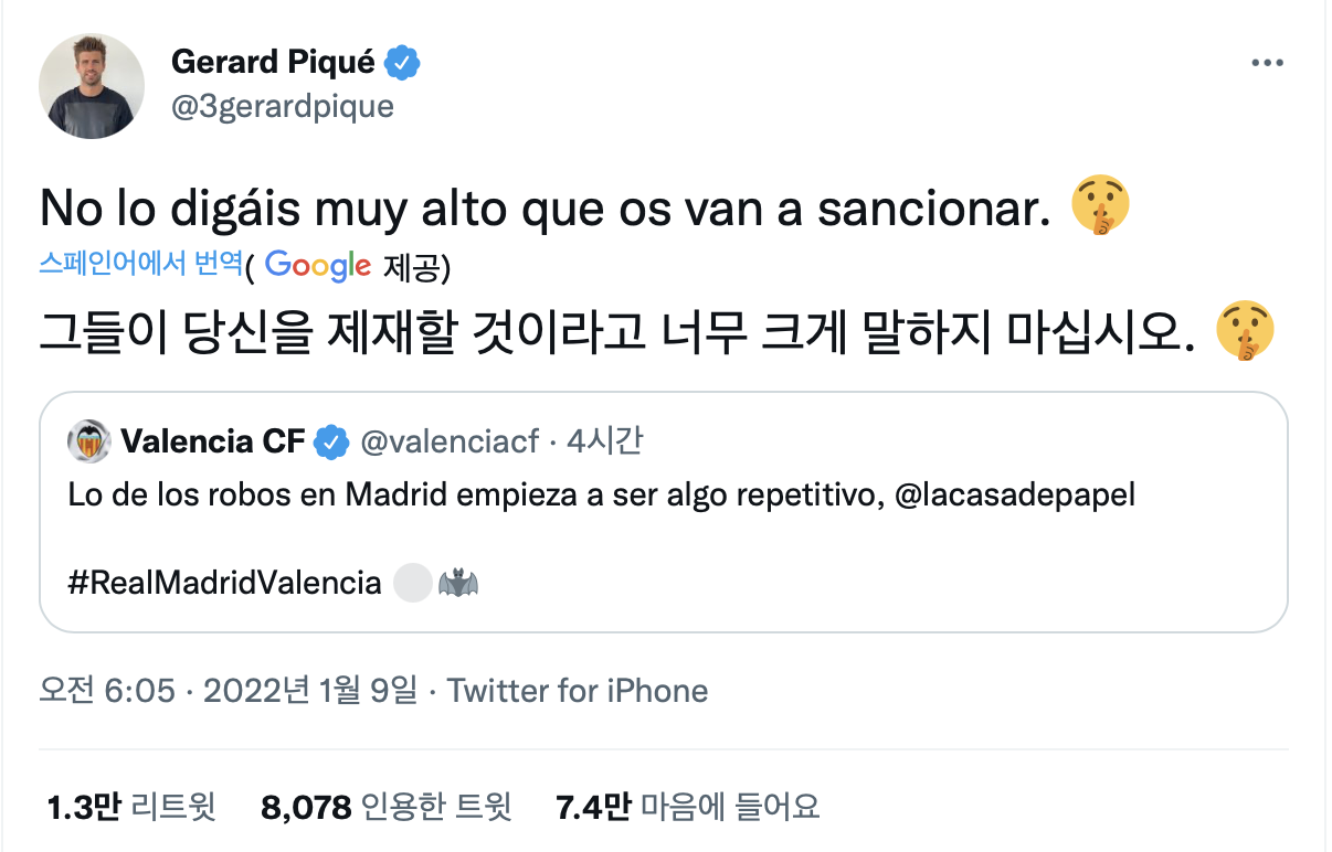 공개적인 SNS에서 레알 마드리드를 저격한 피케