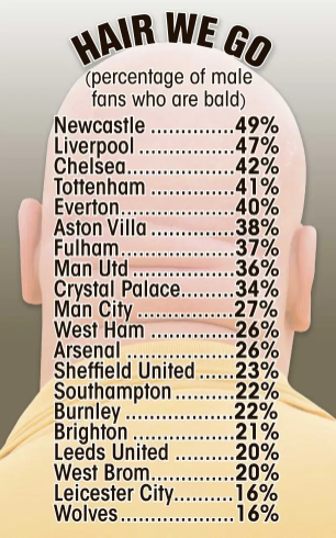[EPL 현지팬들 대머리 비율 순위ㄷㄷㄷㄷ]