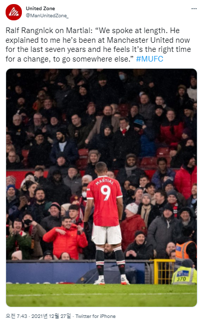 랑닉 - 마샬과 많은 이야기를 나눴다. 그는 맨유에 7년 동안 있었고 지금이 이적할 시기라고 설명했다. 하지만 내가 아는 한 다른 팀들에게 오퍼는 없었고 이대로라면 그는 잔류한다. 아니.... 마샬이 7년이나 맨유에 있었어????ㄷㄷㄷㄷ