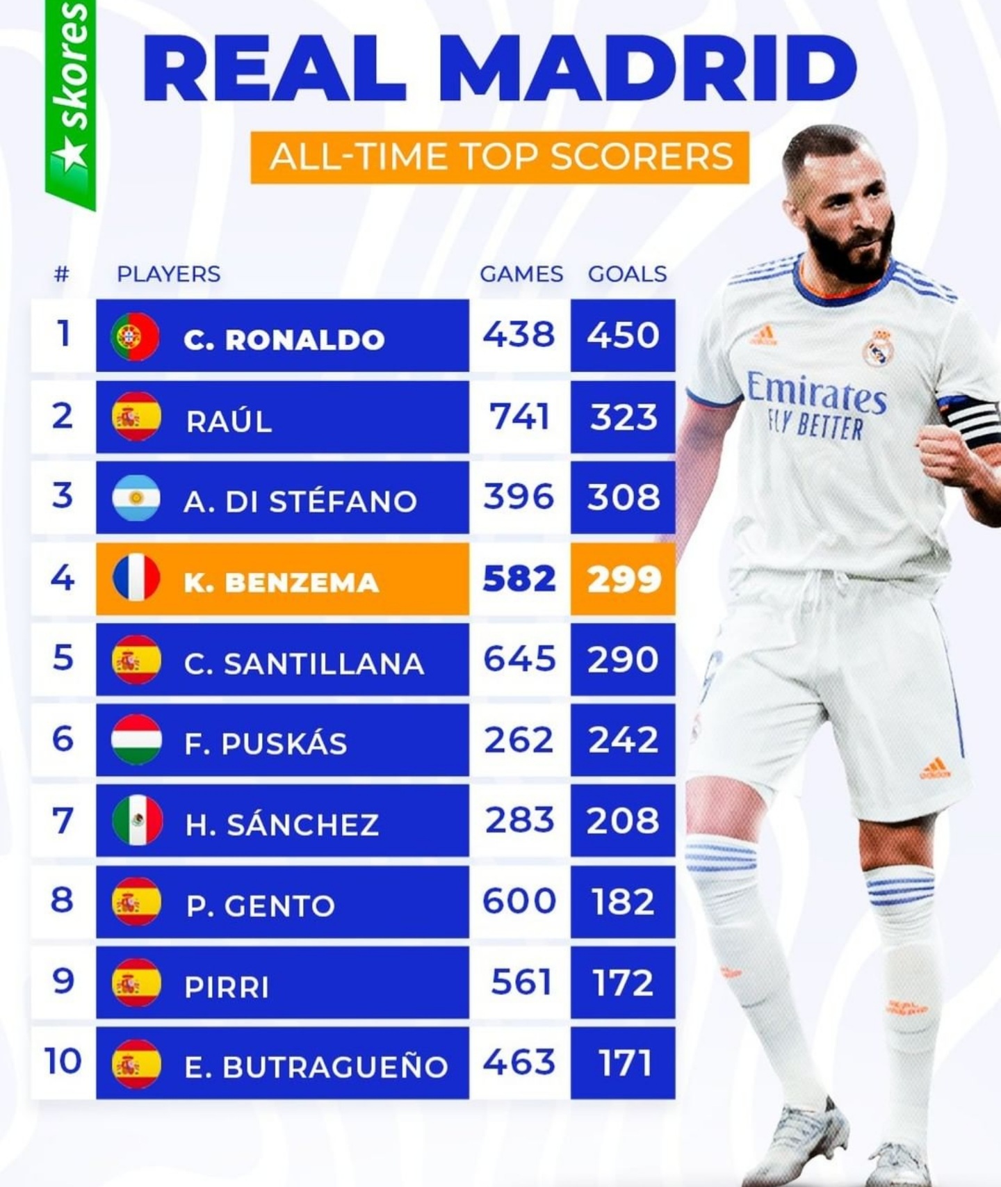 조만간 벤제마가 2위까지는 차지할 것으로 보이네요!! 과연 호날두의 기록을 깨는 선수도 나올게 될까요???ㄷㄷㄷ
