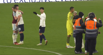 경기 후 그라운드에 난입한 아이에게 유니폼 주는 손흥민.gif