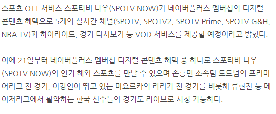[손흥민&이강인 경기, 네이버 플러스 멤버십으로 볼 수 있다!]