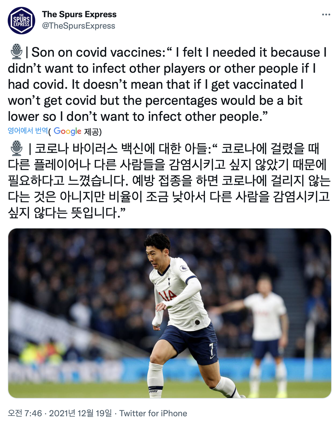 [손흥민이 코로나 백신을 맞기로 결정한 이유]