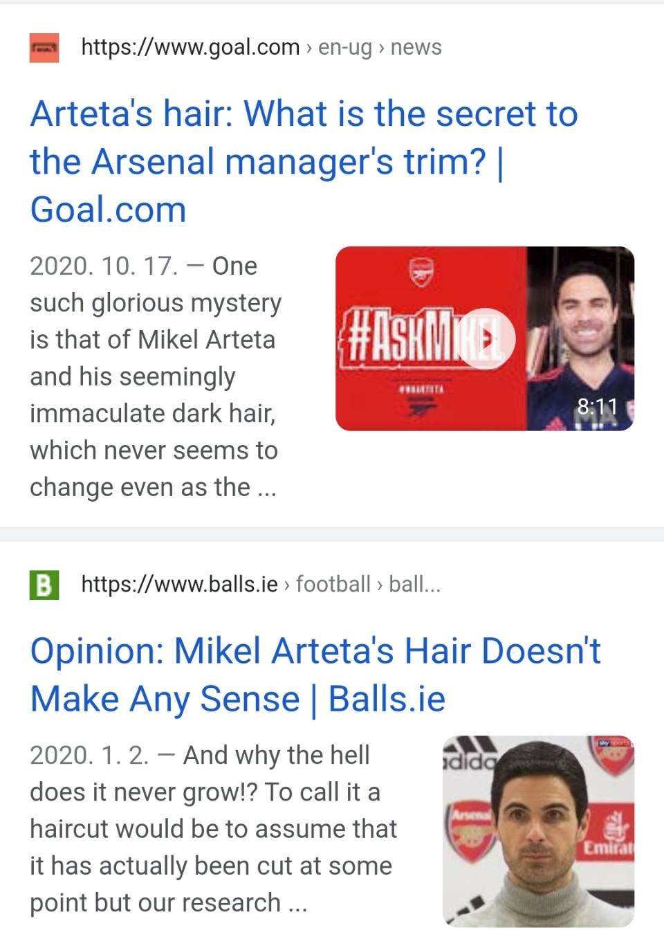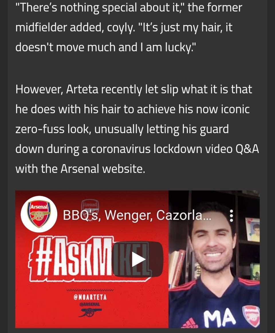 어떻게 저런 레고처럼 뻑뻑하고 잘 정돈된 머리를 갖고 있는지에 대해 은근히 언급이 되고 있는 아르테타ㅋㅋㅋ