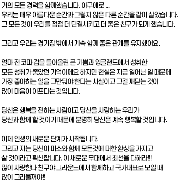 진짜 둘의 우정이 어떤지 많이 봐왔기 때문에 해축팬으로서 너무 슬프네요.....