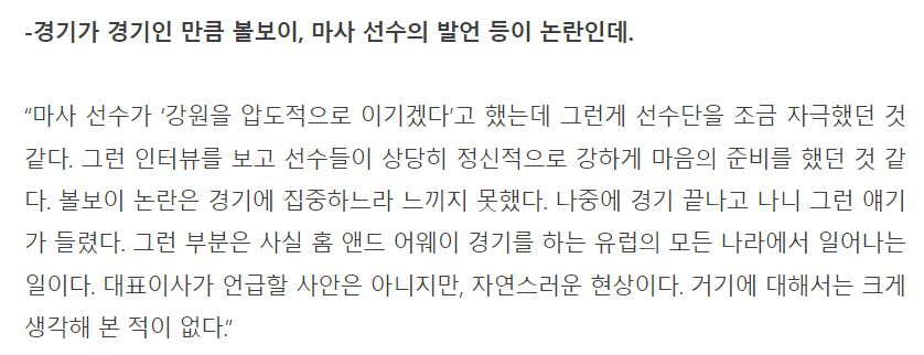 경기 후 해당 사건에 대한 이영표의 인터뷰 내용