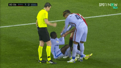 [수비하나 잘 하더니 갑자기 쓰러진 뎀벨레.gif]