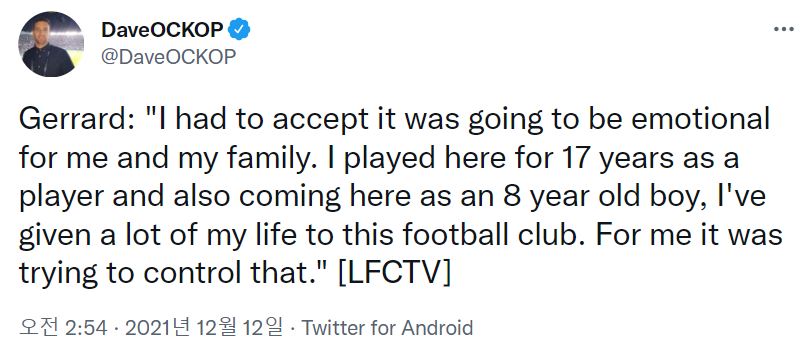 "이 경기가 나와 내 가족에게 감정적으로 다가올 것이라는 걸 인정해야 했다. 나는 8살에 이 곳으로 들어와 17년의 시간을 선수로 있으며 내 인생의 많은 부분을 클럽에서 보냈다. 때문에 나의 감정을 컨트롤하려고 노력해야했다."