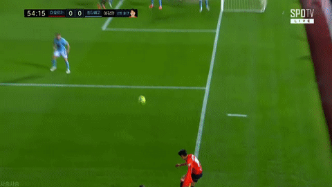 [킥력 물올른 이강인의 아쉬운 어시스트 찬스.gif]