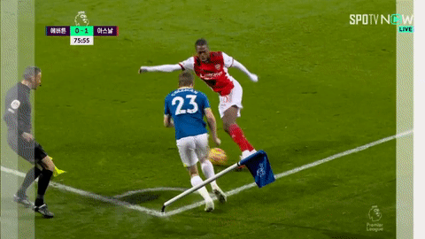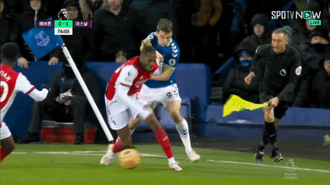 [논란의 에버튼 노파울 발목 아작 태클 장면(feat.마이크 딘).gif]