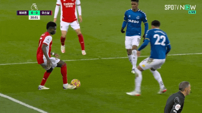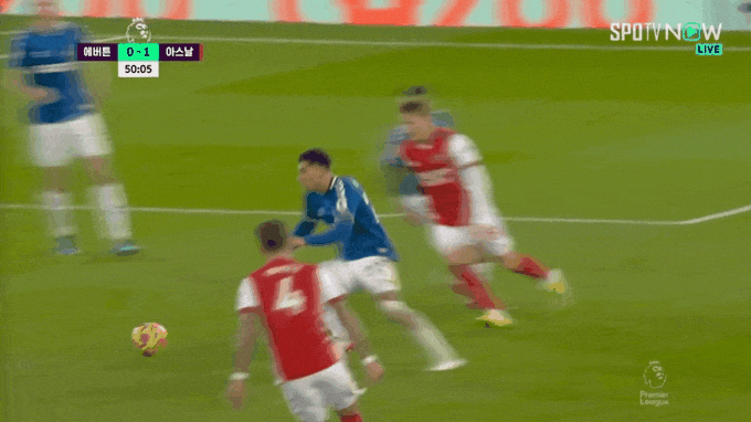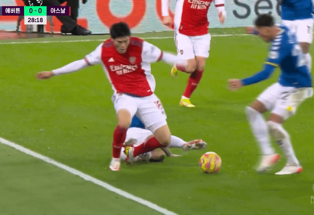 논란의 에버튼 노파울 발목 아작 태클 장면(feat.마이크 딘).gif