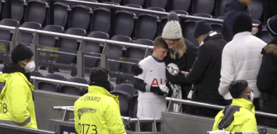 경기 종료 후 한 소년 팬에게 유니폼을 선물하는 손흥민