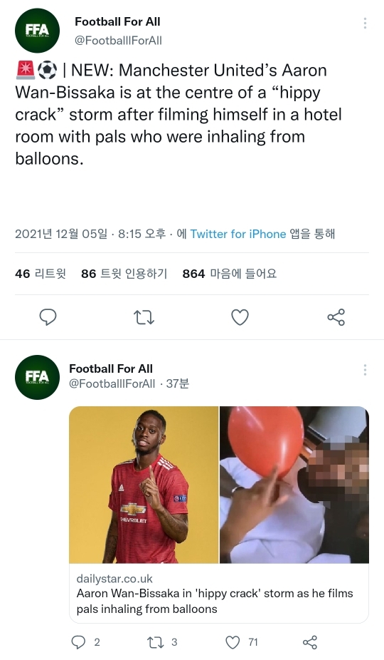 [해피 벌룬 흡입 의심으로 논란중인 맨유 선수ㄷㄷㄷㄷ]