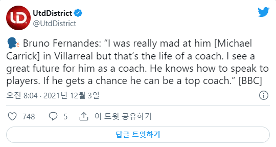 [BBC와의 인터뷰] 브루노 페르난데스 : 나는 비야레알전에 그가 나를 선발로 안 내보내서 캐릭에게 엄청 화가 났었다. 하지만 그게 감독의 삶이다. 나는 그가 감독으로서 엄청난 미래를 보낼 것이라고 생각한다. 캐릭은 선수들에게 어떻게 말을 해야할지 알고 있으며 기회만 주어진다면 그는 탑급 감독이 될 것이다.