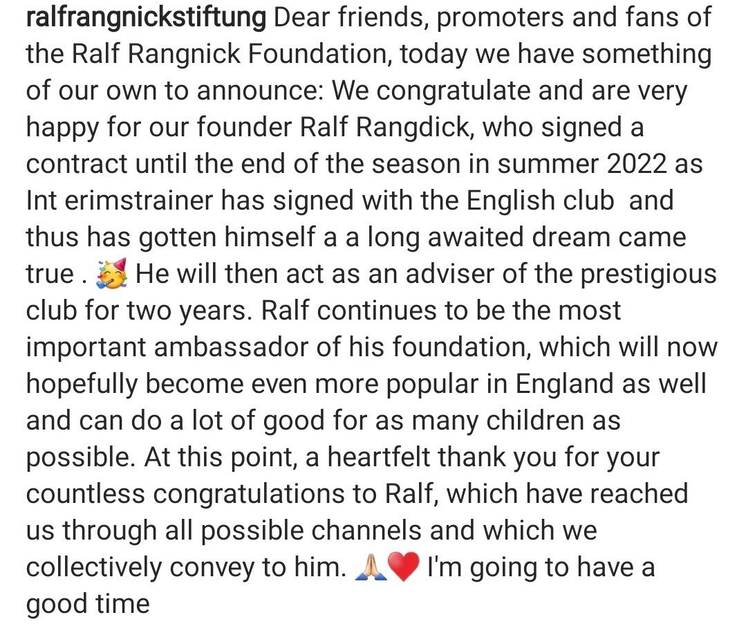 친애하는 친구들, 후원자들, 랄프 랑닉 재단의 팬들에게 오늘 저희를 대신하여 발표할 내용이 있습니다.