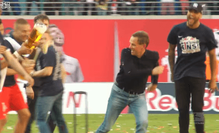 라이프치히 1부리그 승격후 세레머니 도중에 근육올라온 랑닉 감독 겸 단장