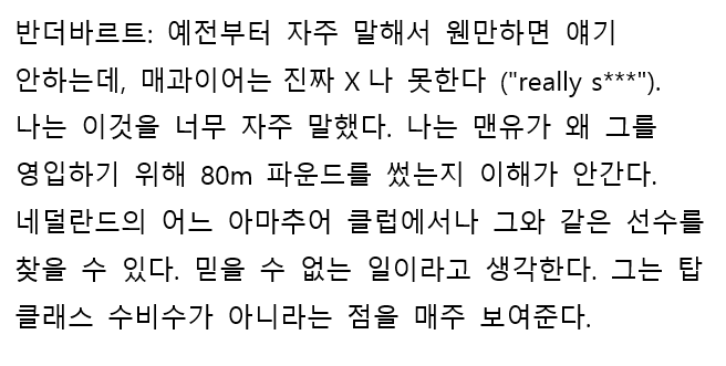 오우.... 매운맛으로 매과이어 디스해버리는 반더바르트ㄷㄷㄷㄷㄷ