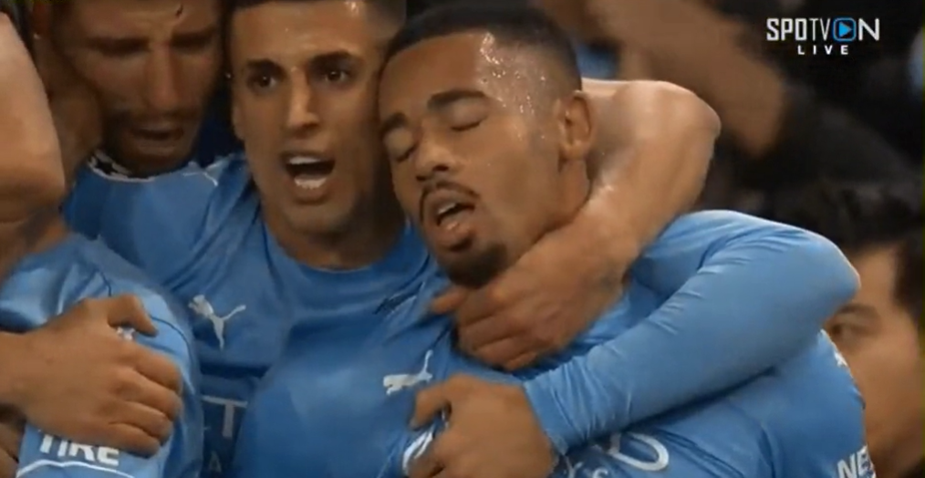 맨시티 역전골 당시 절묘하게 잡힌 메시와 제주스 표정ㅋㅋㅋ.gif