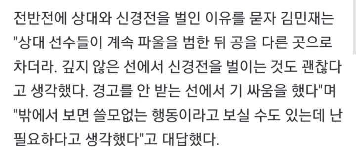 중계화면 상으로 신경전 장면이 상세하게 나오지 않아 당시 해설진도 경기 흐름과는 무관한 신경전이라고 코멘트.