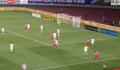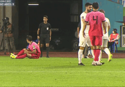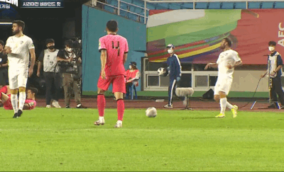 공 가지러 가는 김민재 바로 앞에서 공을 툭 차버리는 시리아 선수