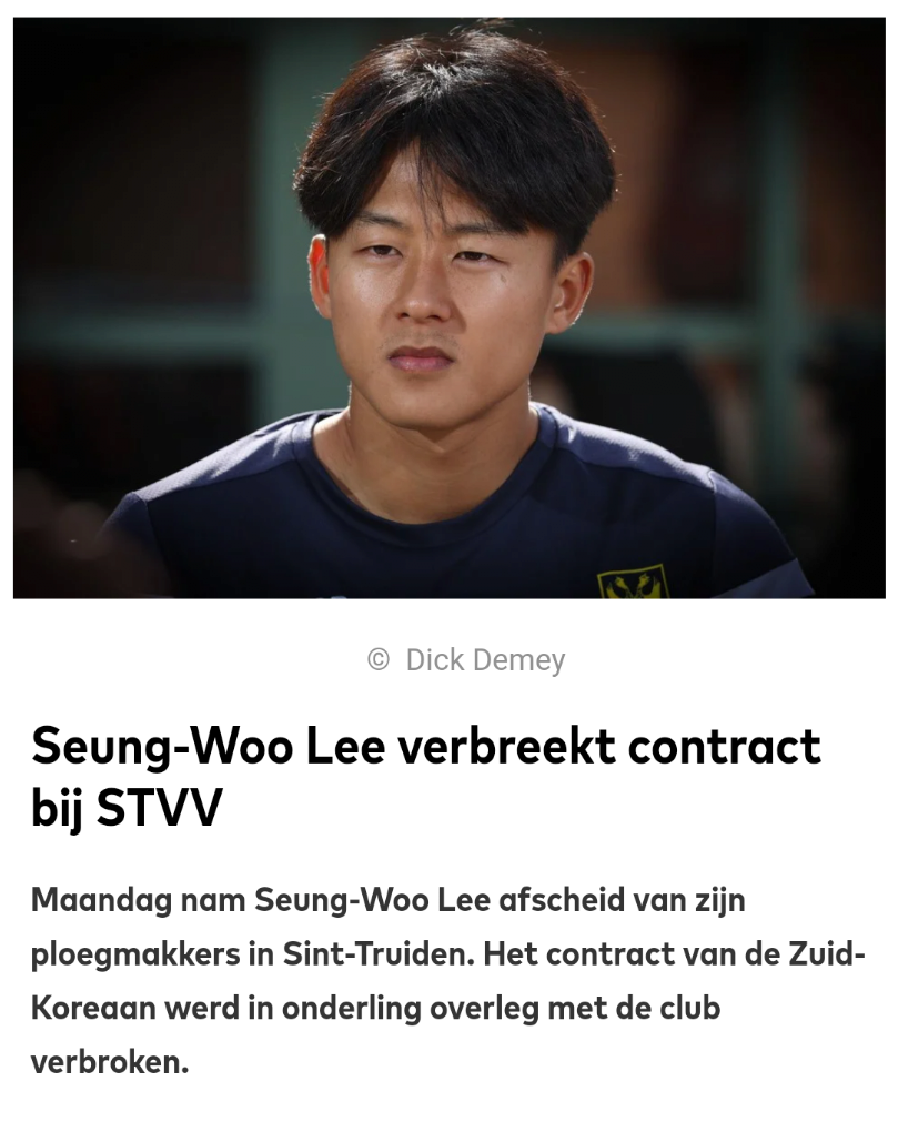 [[HBvL] 신트트라위던, 이승우와 계약 해지]