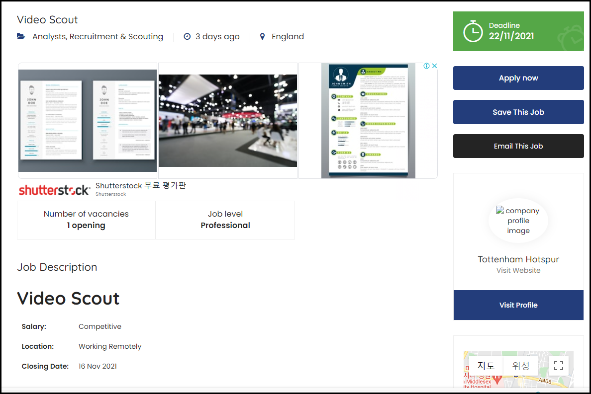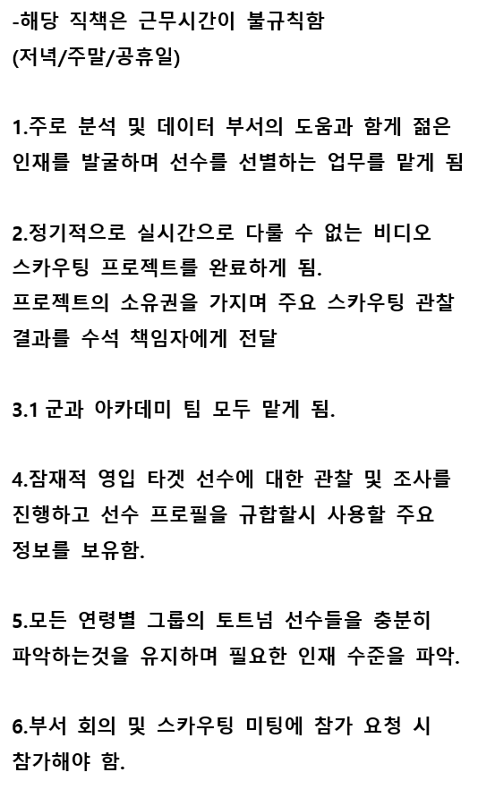 [축구 전문 채용 사이트에 올라온 토트넘 스카우팅 모집 공고]