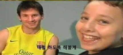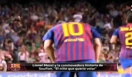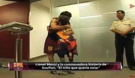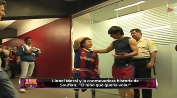 두 다리가 없는 바르셀로나 팬 소년 "수피안"을 구단으로 초대한 메시