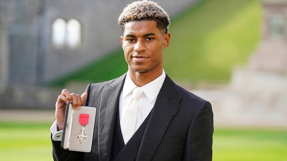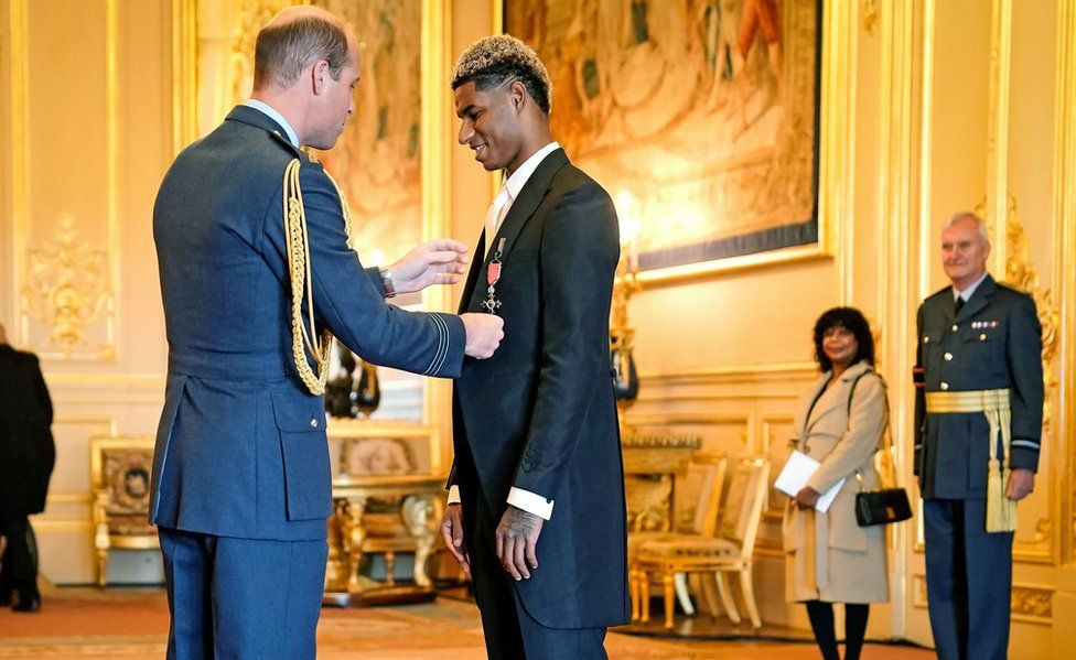 마커스 래시포드가 대영제국 5등급 훈장에 해당하는 MBE를 수여받았습니다. 래시포드와 어머니 멜라니 래시포드는 훈장을 받는 영광을 누렸습니다.