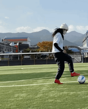 [혼자서 축구 연습하는 송소희 근황.gif]