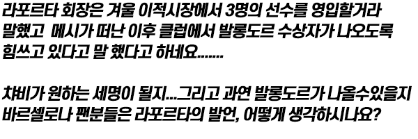 [라포르타 : "바르셀로나, 겨울 이적시장에서 3명 영입할 것"]