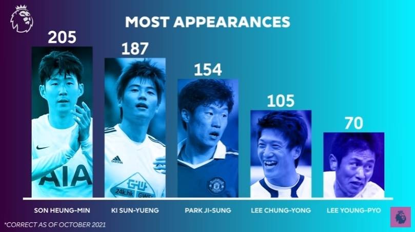 [역대 한국인 프리미어리거들의 ‘출전 횟수, 득점, 어시스트 비교’]